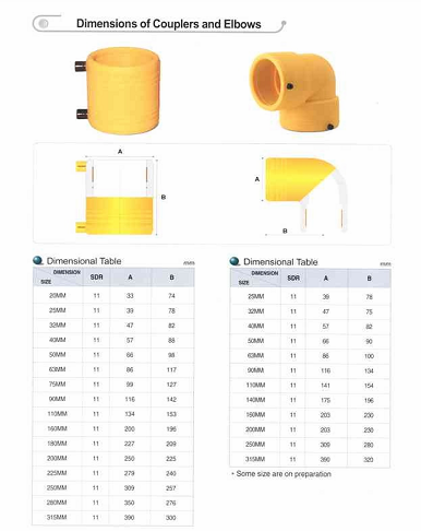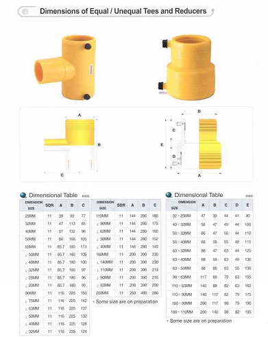 We are able to supply fitting in material of PE80 or PE100 in MDPE or HDPE in black or blue or yellow